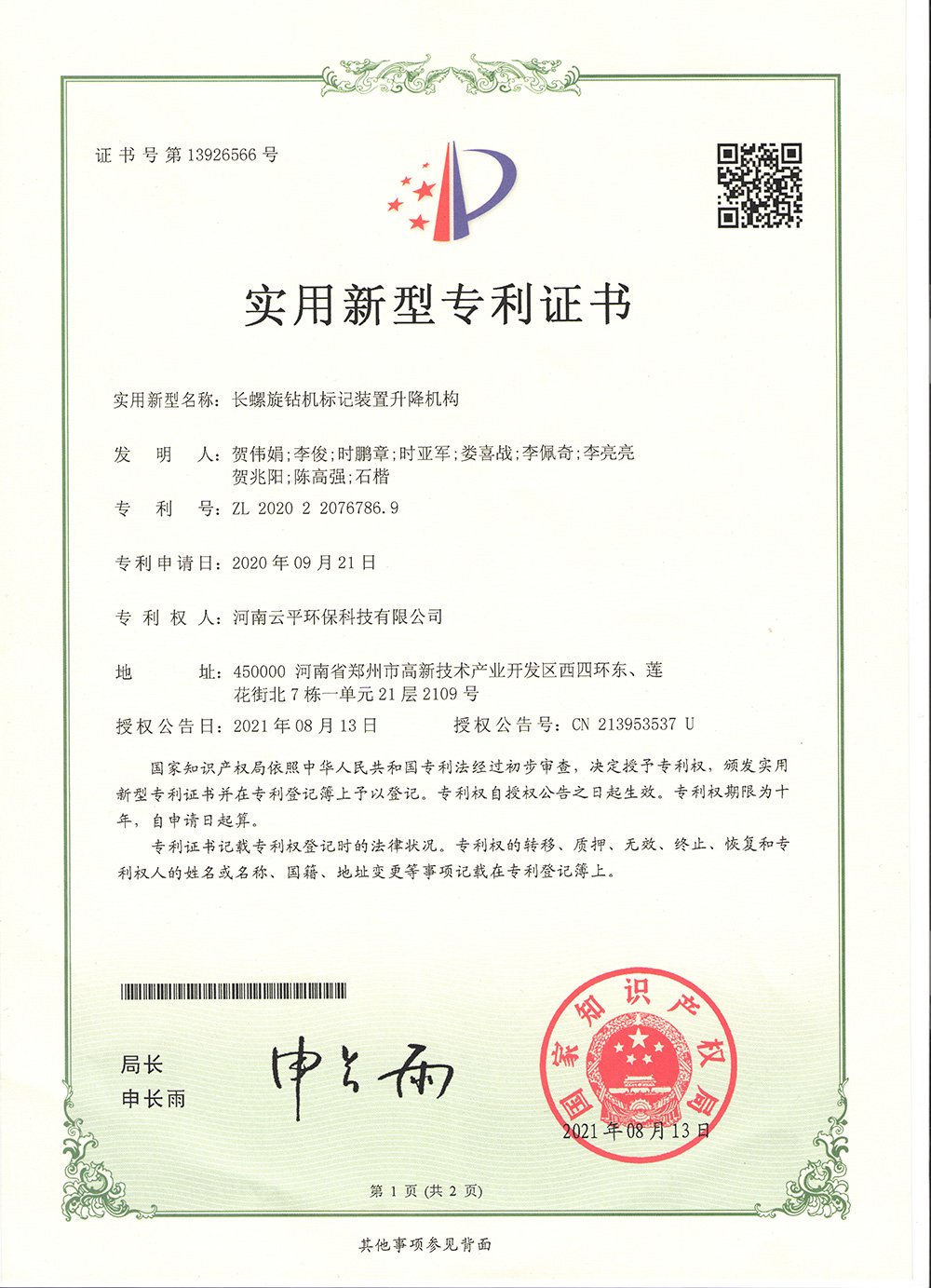 河南云平環(huán)??萍加邢薰?,總部位于河南鄭州高新技術(shù)開發(fā)區(qū),是一家專注地下空間領(lǐng)域,為客戶提供建筑施工節(jié)能環(huán)保產(chǎn)品和數(shù)智化產(chǎn)品及方案的科技型創(chuàng)新企業(yè)。公司以 “開放、合作、創(chuàng)新、共贏”為核心價值觀,始終關(guān)注客戶利益、伙伴利益和社會利益,以“成就客戶價值,成為對社會有貢獻的企業(yè)”為公司使命,依托優(yōu)質(zhì)的產(chǎn)業(yè)資源和市場資源,進行科技研發(fā),跨行業(yè)整合資源,不斷研發(fā)滿足用戶需求的產(chǎn)品,擁有數(shù)十項國家專利。立足中原,致力于成為中國地下空間領(lǐng)域節(jié)能環(huán)保、數(shù)智化解決方案專業(yè)服務(wù)商。