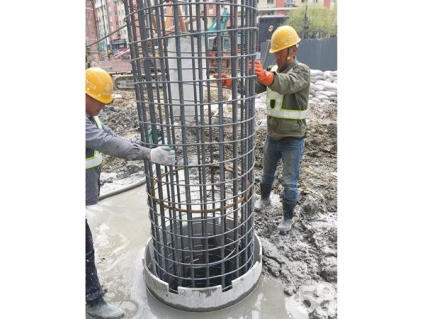 (3)鋼筋籠安裝過程中必須注意:焊接或者機(jī)械連接完畢,必須檢查周圍是否有人,防止鋼筋籠下放時將人碰傷。鋼筋籠的吊點(diǎn)必須焊接牢固,起吊時必須設(shè)專人指揮,不準(zhǔn)斜吊或橫向拖拉,確保鋼筋籠垂直入鉆孔。