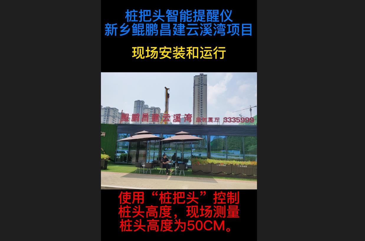 “樁把頭智能提醒儀V1.0”新鄉(xiāng)鯤鵬昌建云溪灣項(xiàng)目CFG樁施工運(yùn)行中,空樁4米,現(xiàn)場實(shí)測樁頭高度50cm。